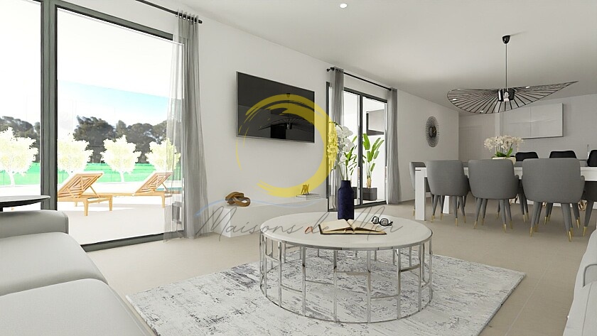 Villas nouvellement construites à Monforte del Cid, avec le terrain de golf à seulement 3 minutes de la maison et juste à côté des villes d'Alicante et d'Elche, où vous trouverez un large éventail d'options culturelles, culinaires, de loisirs et, bien sûr, côtières. Les plages de sable doré de la Méditerranée sont à deux pas de votre nouvelle maison, un endroit où vous pourrez profiter de journées de soleil et de mer à tout moment. Villas situées à 3 minutes du centre sportif du parcours de golf d'Alenda, ce qui en fait l'endroit idéal pour profiter du calme d'un quartier résidentiel calme mais avoir toutes les commodités à votre porte (à seulement 12 minutes de l'aéroport d'Alicante-Elche). Le développement est une communauté qui combine le meilleur de la vie moderne avec la tranquillité de l'environnement naturel (pas de frais communautaires). Découvrez l'élégance et le confort de cette belle villa individuelle de 108m2 ou 128m2 (deux tailles disponibles), conçue pour vous offrir un style de vie exceptionnel, tout en rez-de-chaussée. Située dans la prestigieuse urbanisation, cette propriété vous offre une expérience de vie unique et de qualité. Sur des parcelles à partir de 618m2, vous offrant amplement d'espace pour profiter à la fois de l'intérieur et de l'extérieur. Profitez de l'intimité de cette villa individuelle, où vous pourrez vous détendre dans votre propre jardin, créer une oasis de tranquillité ou même ajouter une piscine pour profiter de ces chaudes journées d'été. La maison est divisée en deux grandes zones : Zone jour : Où l'on trouve un spacieux salon-salle à manger avec une cuisine ouverte (meubles de cuisine inclus) qui se connecte au porche spacieux et moderne par ses deux grandes fenêtres, laissant place au jardin extérieur et, pourquoi pas... à la piscine. La lumière inonde chaque recoin grâce aux grandes fenêtres du salon, qui s'ouvrent sur le porche, un espace moderne et fonctionnel qui vous invite à profiter pleinement du plein air. Imaginez passer vos soirées en famille et entre amis, entouré d'un environnement serein et naturel. En tant qu'espace supplémentaire, il dispose d'un espace buanderie stratégiquement situé dans l'agencement de la maison où il sera facilement accessible depuis n'importe quel point de la maison. Zone de nuit ou de repos : Dans cette zone nous trouvons 3 chambres. La chambre principale dispose d'un grand dressing et d'une salle de bain attenante. De plus, une deuxième salle de bain dessert le reste des chambres et le salon. Ici, vous trouverez non seulement une communauté résidentielle, mais un endroit où la nature et l'élégance s'entremêlent pour vous offrir un style de vie inégalé. Que vous cherchiez à établir une résidence permanente, à profiter d'une maison de vacances ou à investir dans votre avenir, cette villa est parfaite pour vous. Développement privé à proximité des principales villes de la province d'Alicante, à 15 minutes en voiture d'Elche et d'Alicante, ainsi que de l'aéroport et des meilleures plages. Le développement est situé dans un cadre calme à proximité du parcours de golf d'Alenda à Monforte del Cid.